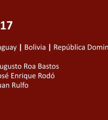 Augusto Roa Bastos (1917-2005). En 2017 se conmemora el centenario de su nacimiento, en Asunción (Paraguay), el 15 de julio de 1817. Fue autor de novelas, poemas, cuentos, teatro, guiones cinematográficos y letras de canciones. Figuran entre sus obras El ruiseñor de la aurora y otros poemas (1942), El trueno entre las hojas (1953), Hijo de hombre (1960), El naranjal ardiente, nocturno paraguayo (1960), El baldío (1966), Los pies sobre el agua (1967), Yo el Supremo (1974), El sonámbulo (1976), Lucha hasta el alba(1979), Contar un cuento, y otros relatos (1984), Vigilia del almirante (1992), El fiscal(1993), Contravida (1994), Madama Sui (1995), La tierra sin mal (1998).